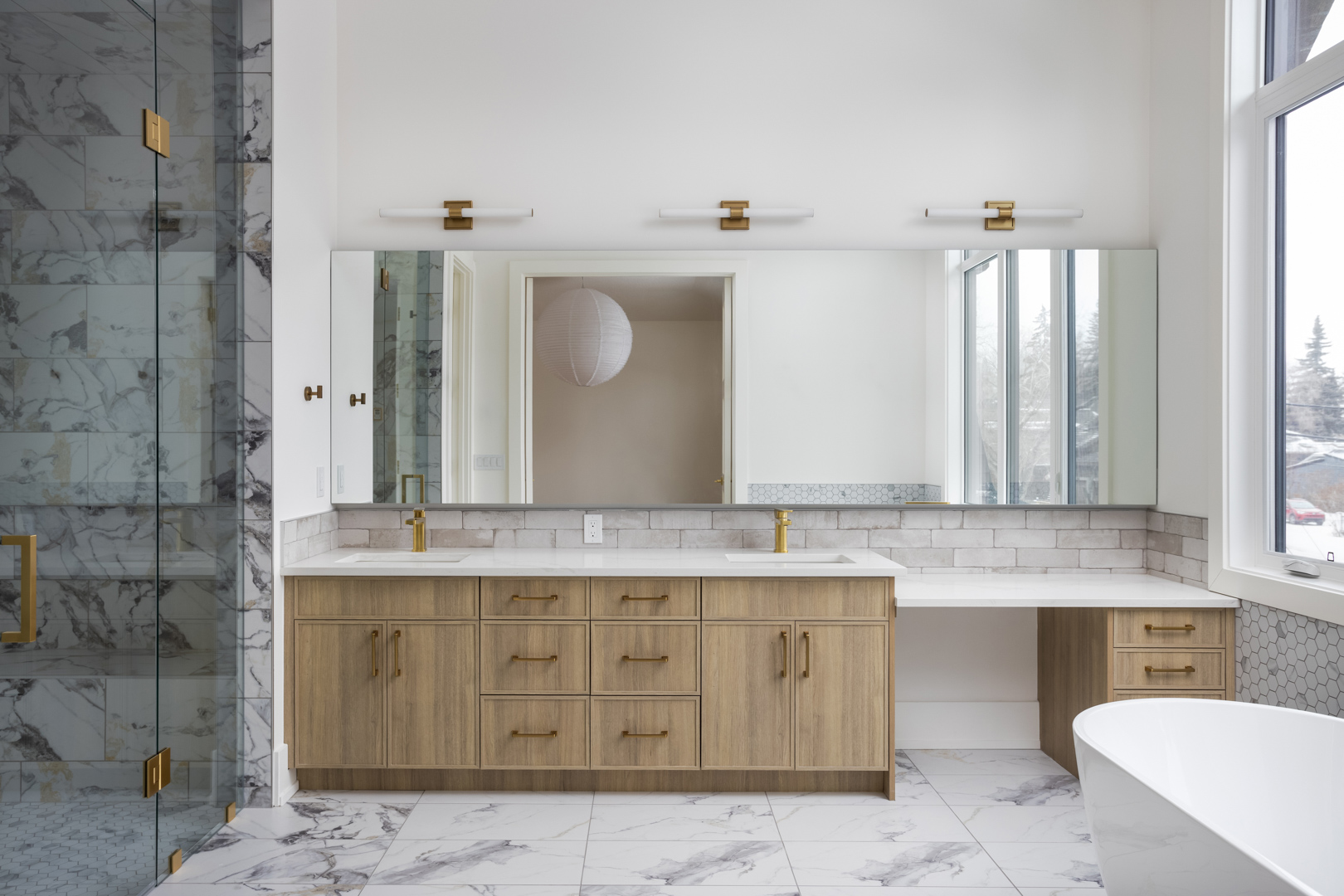 - Trim: Gama Slim Shaker trim adds a touch of classic elegance with its sleek lines, enhancing the modern aesthetic while providing a subtle contrast against the more textured wood surfaces.