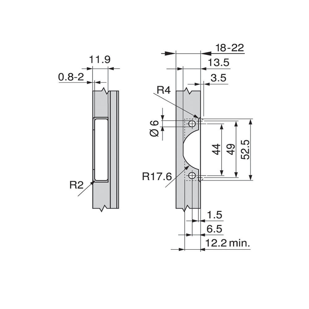 – Do not use a hammer to insert the hinge into the drill hole.