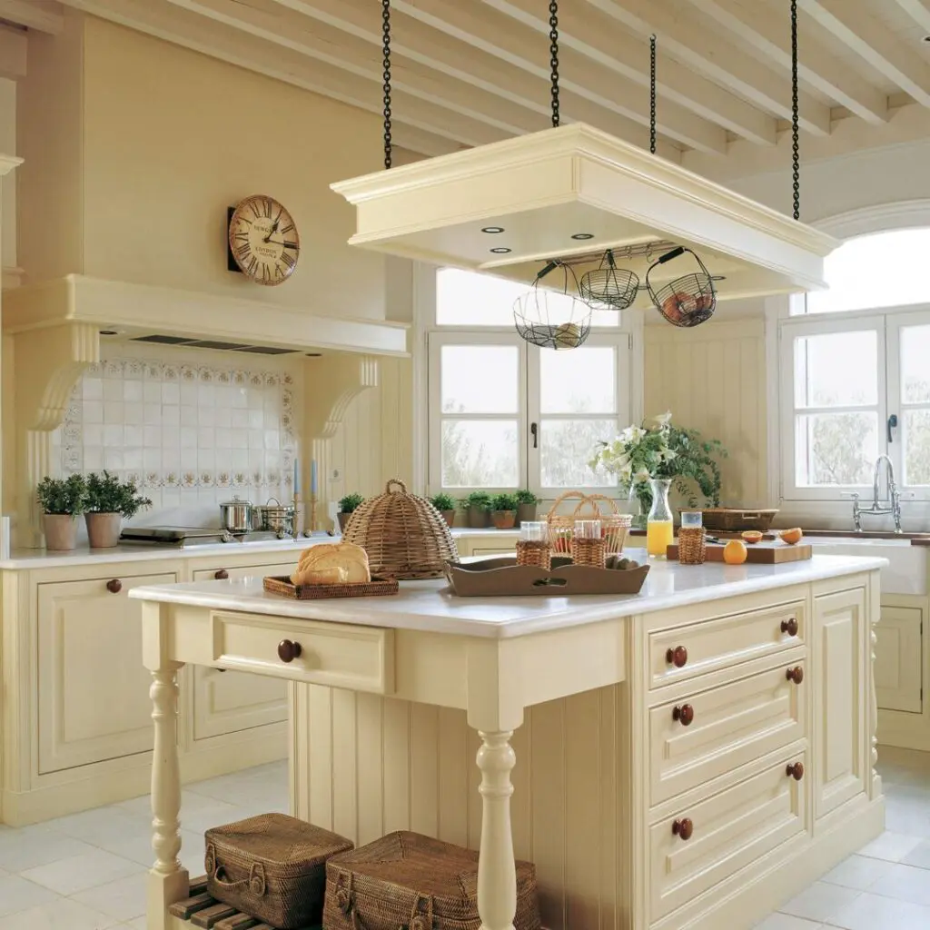 The dominant colors in a Provence-style island are cream, beige, lettuce, and a range of pastel shades, which evoke a sense of tranquility and coziness. Embrace the charm of Provence with an island that exudes a welcoming atmosphere and a delightful blend of rustic elegance.